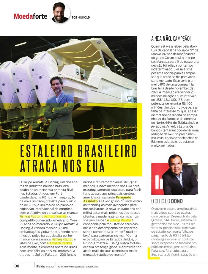 de consolidar as marcasFishing Raptor e Armatti Yachts nocompetitivo mercado americano. Com25