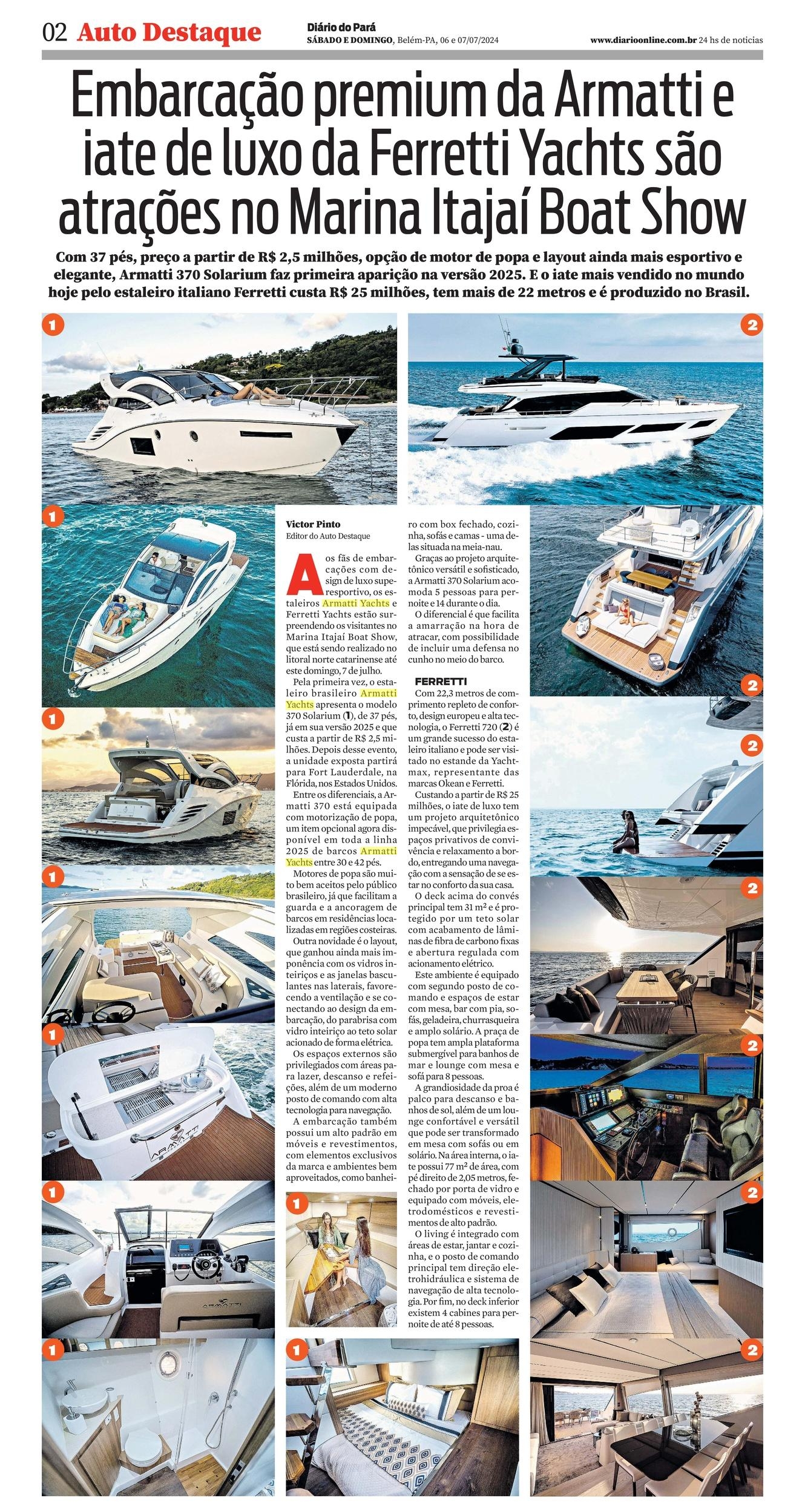 embar- cações com de- sign de luxo supe- resportivo, os es- taleiros Armatti Yachts e Ferret