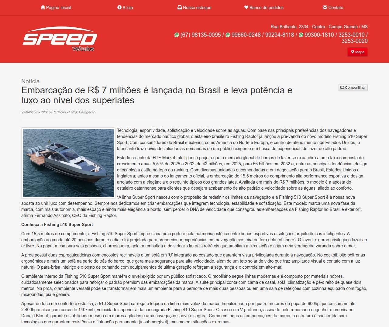 Notícia Embarcação de R$ 7 milhões é lançada no Brasil e leva potência e luxo ao nível dos superiates 22/04/2025 - 12:20 -