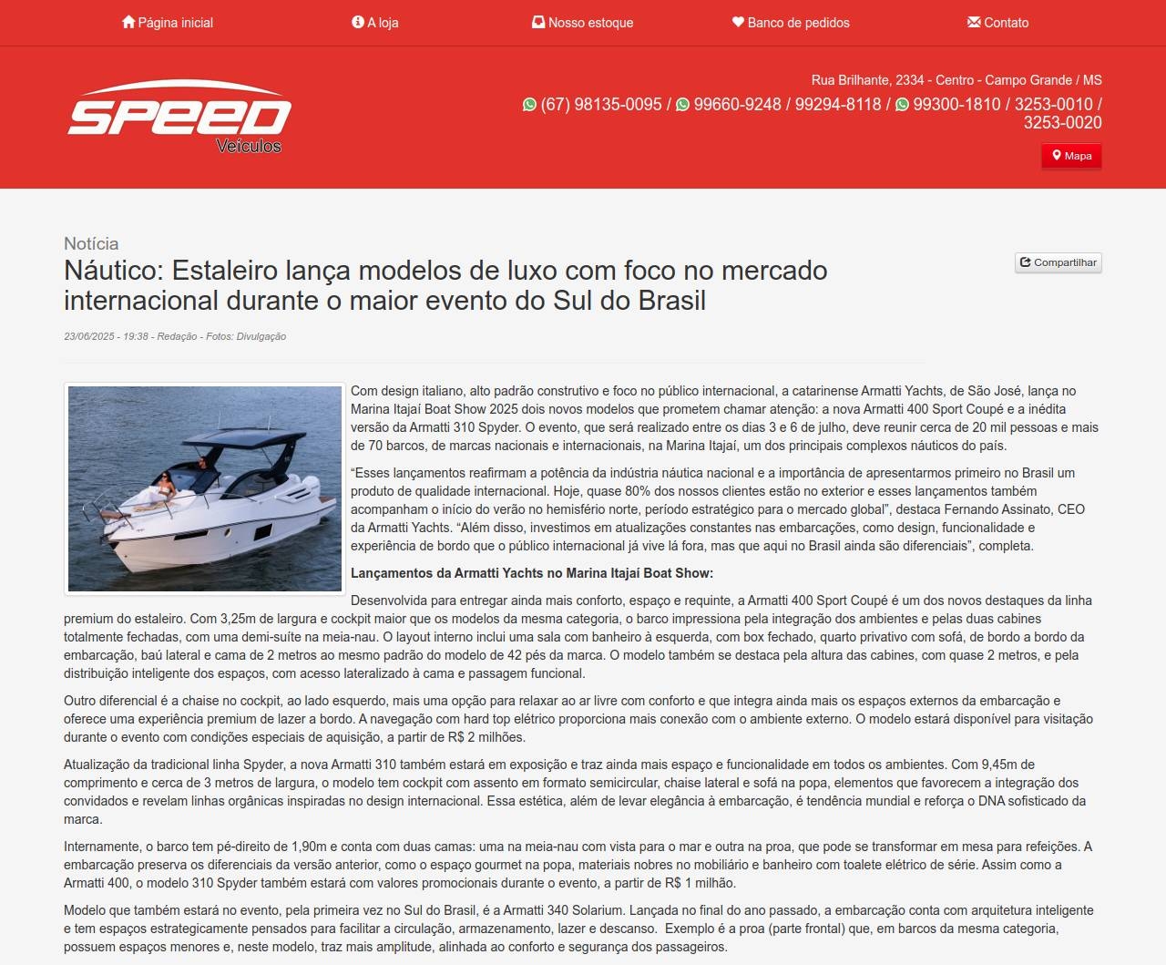 Notícia Náutico: Estaleiro lança modelos de luxo com foco no mercado internacional durante o maior evento do Sul do Brasil