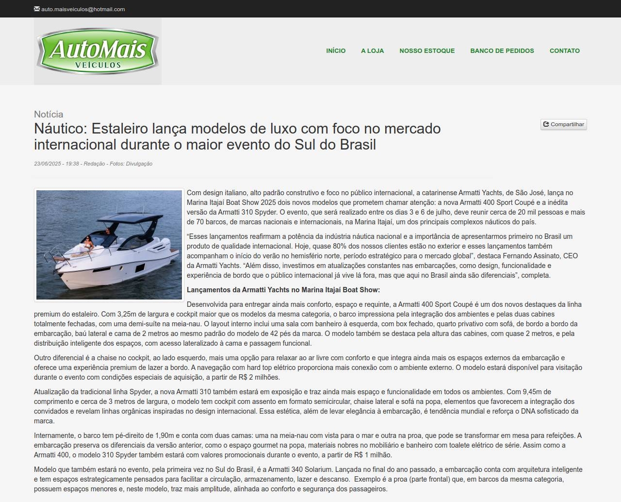 Notícia Náutico: Estaleiro lança modelos de luxo com foco no mercado internacional durante o maior evento do Sul do Brasil