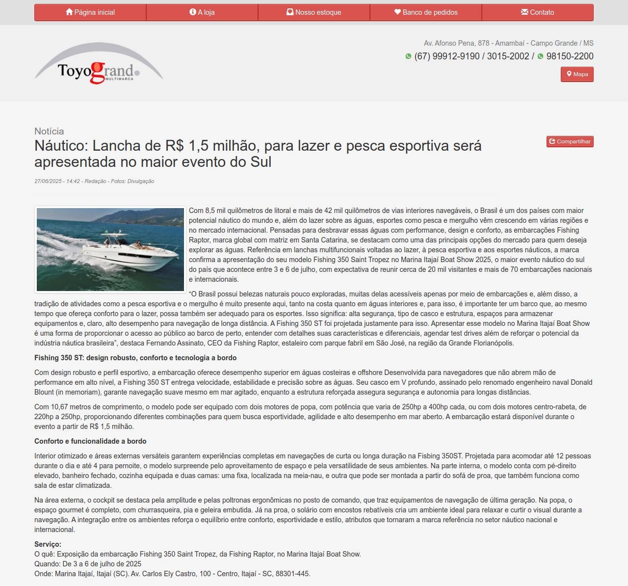 Notícia Náutico: Lancha de R$ 1,5 milhão, para lazer e pesca esportiva será apresentada no maior evento do Sul 27/06/2025