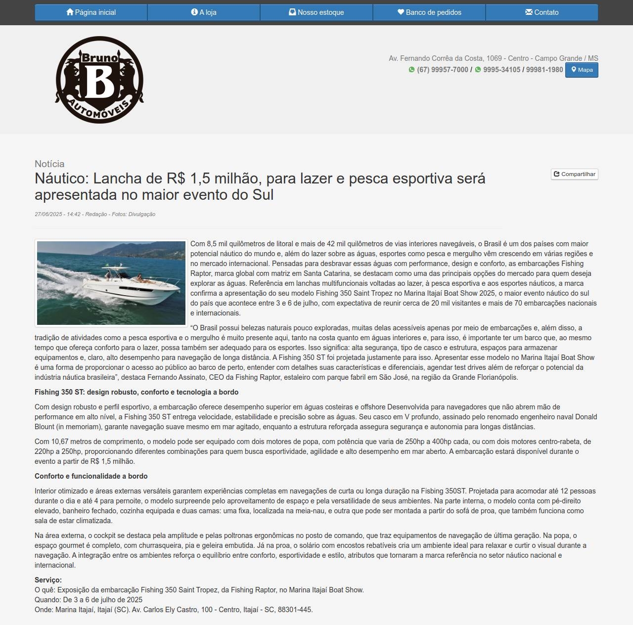 Notícia Náutico: Lancha de R$ 1,5 milhão, para lazer e pesca esportiva será apresentada no maior evento do Sul 27/06/2025