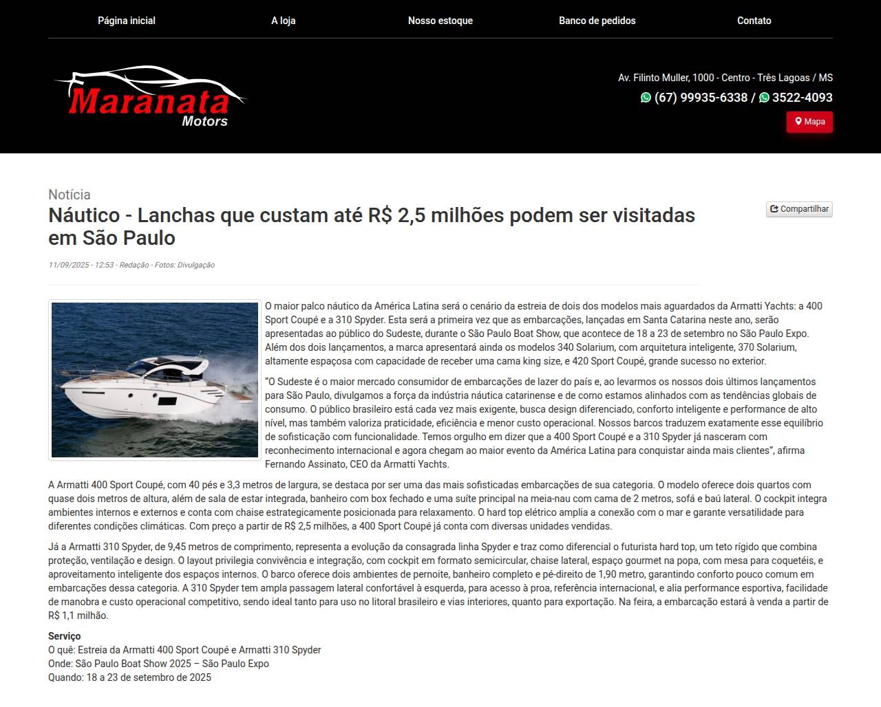 Notícia Náutico - Lanchas que custam até R$ 2,5 milhões podem ser visitadas em São Paulo 11/09/2025 - 12:53 - Redação - Fo
