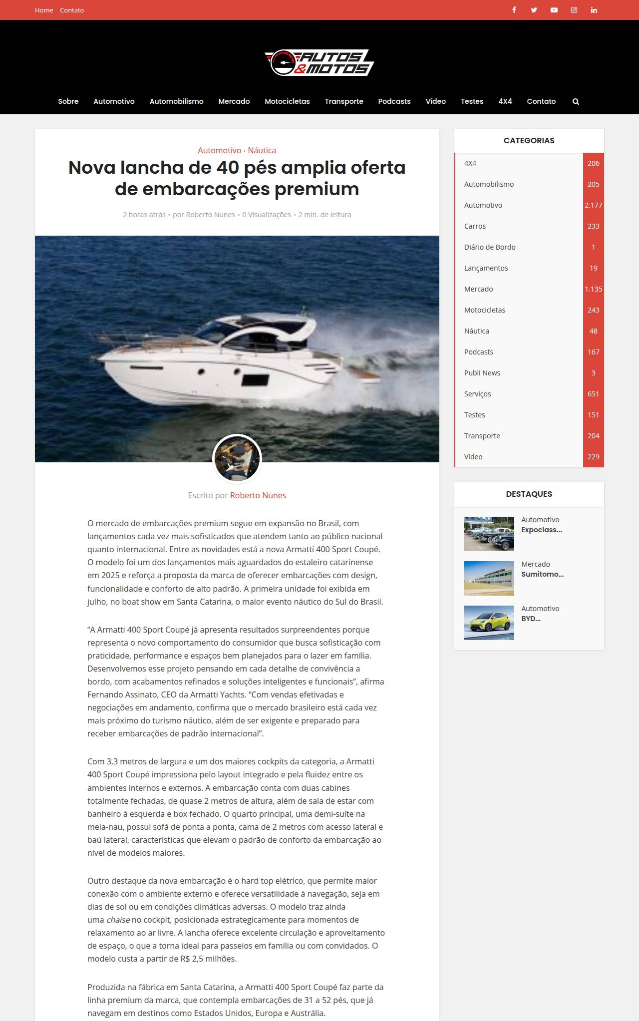 Nova lancha de 40 pés amplia oferta de embarcações premium - Autos&Motos