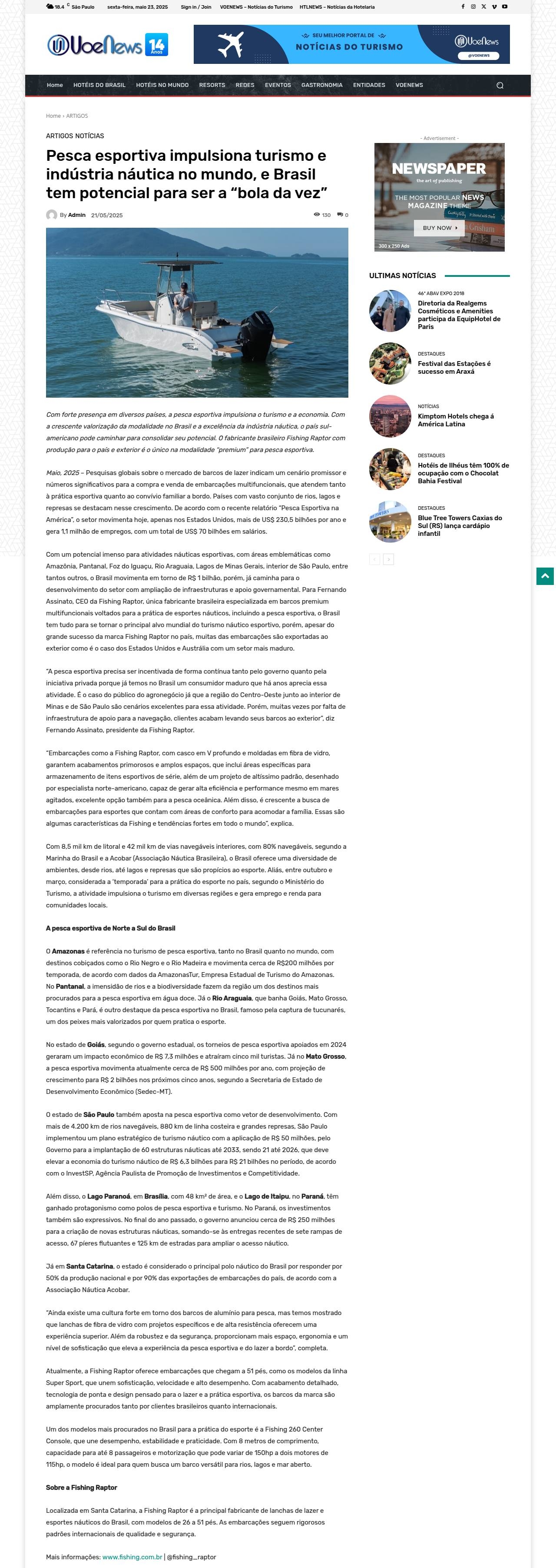 Pesca esportiva impulsiona turismo e indústria náutica no mundo, e Brasil tem potencial para ser a "bola da vez" VOENEWS - Notícias do Turismo