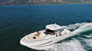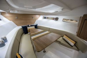 Com 10,67 metros de comprimento, o modelo pode ser equipado com dois motores de popa, com potência que varia de 250hp a 400hp cada, ou com dois motores centro-rabeta, de 220hp a 250hp, proporcionando diferentes combinações para quem busca esportividade, agilidade e alto desempenho em mar aberto. A embarcação estará disponível durante o evento a partir de R$ 1,5 milhão.